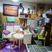 Dokonalost bytečků, které zařizuje, si člověk nejvíc užije, když je vidí na vlastní oči. Na fotografii, kde se nepozná meřítko, vypadají jako skutečné. Nejsou to totiž žádné obyčejné plastové výlisky, které se prodávají v hračkářství. Barbíny mají poměr k lidské postavě 1:6 a ve stejném poměru musí být i zařízení jejich bytů. „V Káhiře jsem kdysi objevila maličkou intarzovanou sedací soupravu a řekla jsem, že bez ní neodjedu. Byla dost drahá i na tamní poměry, ale já ji musela mít. Další drobné věci jsem si přivezla z Indie. Tady v Blatné v bazaru jsem dostala komodu, spoustu věcí jsem pořídila na burze, která se pravidelně koná v Tchořovicích. Člověk musí pořád někde šmejdit a hledat a postupně věci sbírat,“ dodává výtvarnice, která je navíc obdařená patřičnou dávkou fantazie, takže řadu předmětů předělá nebo přizpůsobí svému účelu. Jako když zařizovala byteček v jižanském stylu pro Scarlett O´Harovou. „Dělala jsem to pro dva kluky, kteří mají sbírku barbín a mezi nimi i sběratelskou Scarlett z románu Jih proti Severu. Chtěli pro ni domácnost. Na burze jsem objevila italský nábyteček ze sedmdesátých let, který jsem pořídila za pár stovek a pak ho přelakovala na černo a na zlato a výsledek vypadá skvěle.“ Navíc Klářin přítel je dřevomodelář, a co se nedá koupit v bazaru, na burze nebo přes internet, dokáže vyrobit.